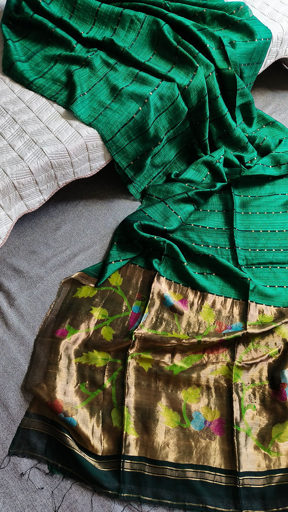 Matka Muslin Silk Saree Paithani Jamdani AuspiciousGreen