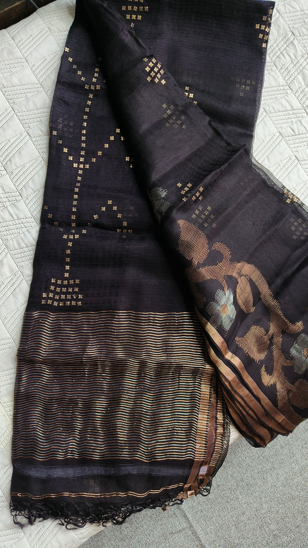 Tussar Silk Jamdani Saree CreamAndSeaBlue