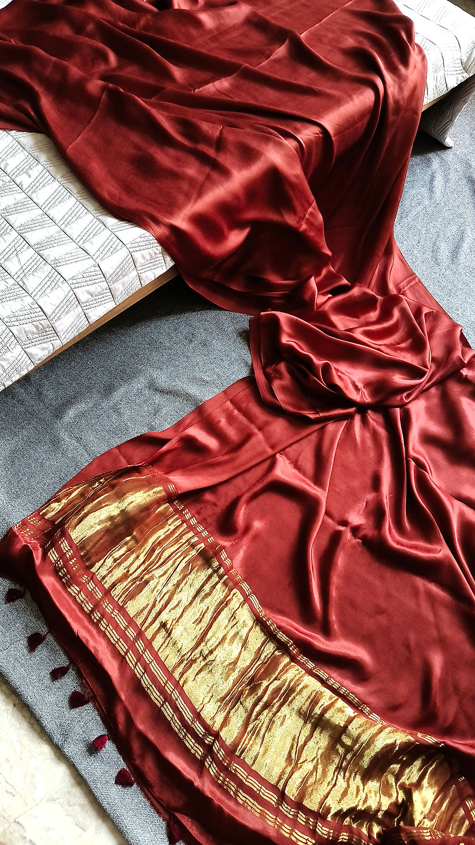 Tissue Silk Linen Saree With Tissue OrangishVibe