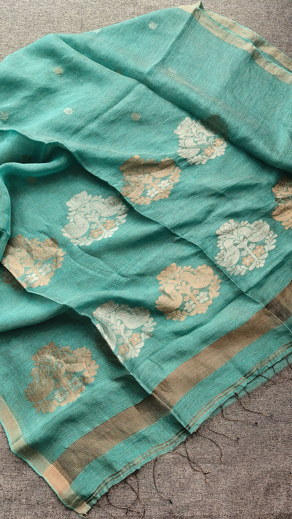 The collection features Silk Linen Jamdani sarees, Tissue Silk Linen Jamdani sarees with luminous finish, and select Premium Linen Jamdani sarees woven with delicate traditional motifs. Known for their airy texture and intricate Jamdani craftsmanship, these sarees balance sophistication with all-day comfort.